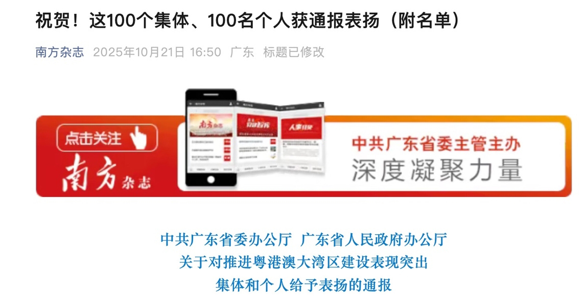 近日,中共广东省委办公厅、广东省人民政府办公厅发布关于对推进粤港澳大湾区建设表现突出的集体和个人给予表扬的通报。通报指出,《粤港澳大湾区发展规划纲要》实施以来,全省上下认真落实省委“1310”具体部署,围绕做实粤港澳大湾区“一点两地”全新定位,携手港澳加快建设国际一流湾区和世界级城市群,推动粤港澳大湾区建设迈出坚实步伐,涌现出一大批表现突出、成绩优异的集体和个人。为进一步激发广大党员干部群众投身粤港澳大湾区建设热情,经省委、省政府同意,对在推进粤港澳大湾区建设工作中表现突出的100个集体和100名个人给予通报表扬。其中,东江实验室名列集体名单之中。先进能源科学与技术广东省实验室(简称“东江实验室”)作为第三批广东省实验室之一,是参与粤港澳大湾区建设的一支重要科技力量。自2019年启动建设以来,充分利用粤港澳大湾区优势资源,依托HIAF、CiADS等国家重大科技基础设施,凝聚了一支高水平科技人才队伍,建成一批科技创新研发平台,参与承担国家和省市重大科技项目40余项,产出一批国际国内重要科技成果,实现一批科技成果在粤转化落地,积极开展国际学术交流与合作,持续提升国际影响力。大道至简,实干为
